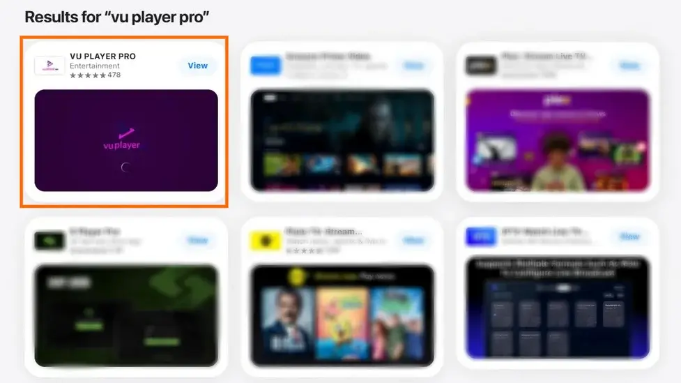 Alternativ können Sie den App Store öffnen, nach „VU Player Pro“ suchen und dann die entsprechende Anwendung auswählen.