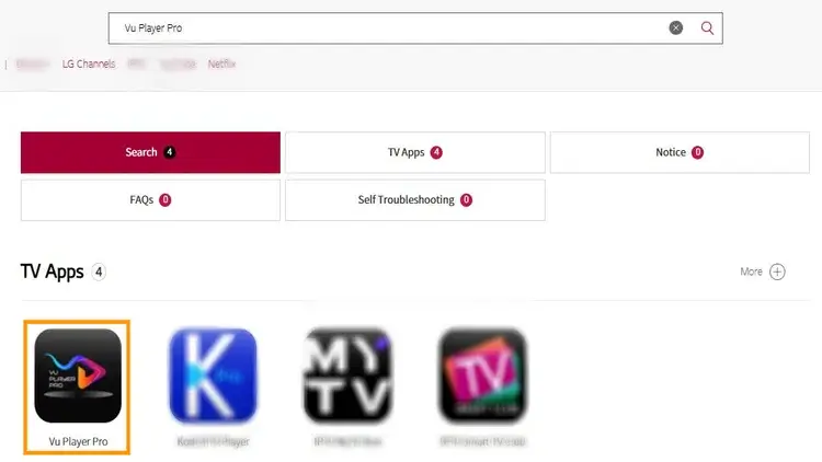 1 : Öffnen Sie den LG Content Store, suchen Sie nach „VU Player Pro“ und wählen Sie dann die entsprechende Anwendung aus.