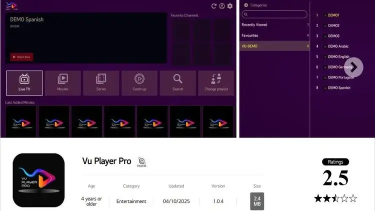 Wichtiger Hinweis: VU Player Pro ist eine kostenpflichtige Anwendung, die für ein besseres Streaming-Erlebnis und optimale Qualität sorgt. Die Aktivierungsbedingungen hängen vom gewählten Abonnement ab. Bitte lesen Sie die Informationen am Ende der Seite sorgfältig durch, bevor Sie eine Testversion anfordern oder die Aktivierung beantragen.